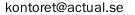 Contact We have an office in Sundsvall, but are active throughout Sweden and abroad. Actual IT Dalgatan 33 SE-825 39 Sundsvall Sweden Organisation number: 556944-6668 Telephone: +46 (0)73 315 28 55, +46 (0)60 7500 800 or +46 (0)8 1210 5600